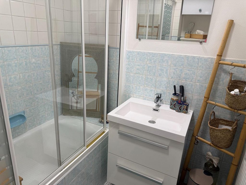 Il se compose d’une entrée desservant une salle à manger et un salon, disposant sur toute la longueur d’un grand balcon, avec stores neufs (facture à l’appui)