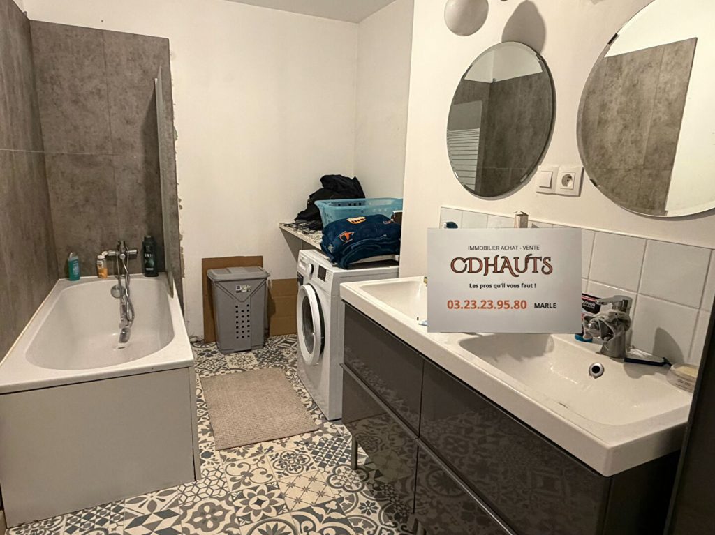 L’appartement loué de 4 pièces, avec salon-séjour, cuisine équipée et salle de bains, à l’étage un palier, 2 chambres, avec jardinet, garage pour un véhicule, et atelier.