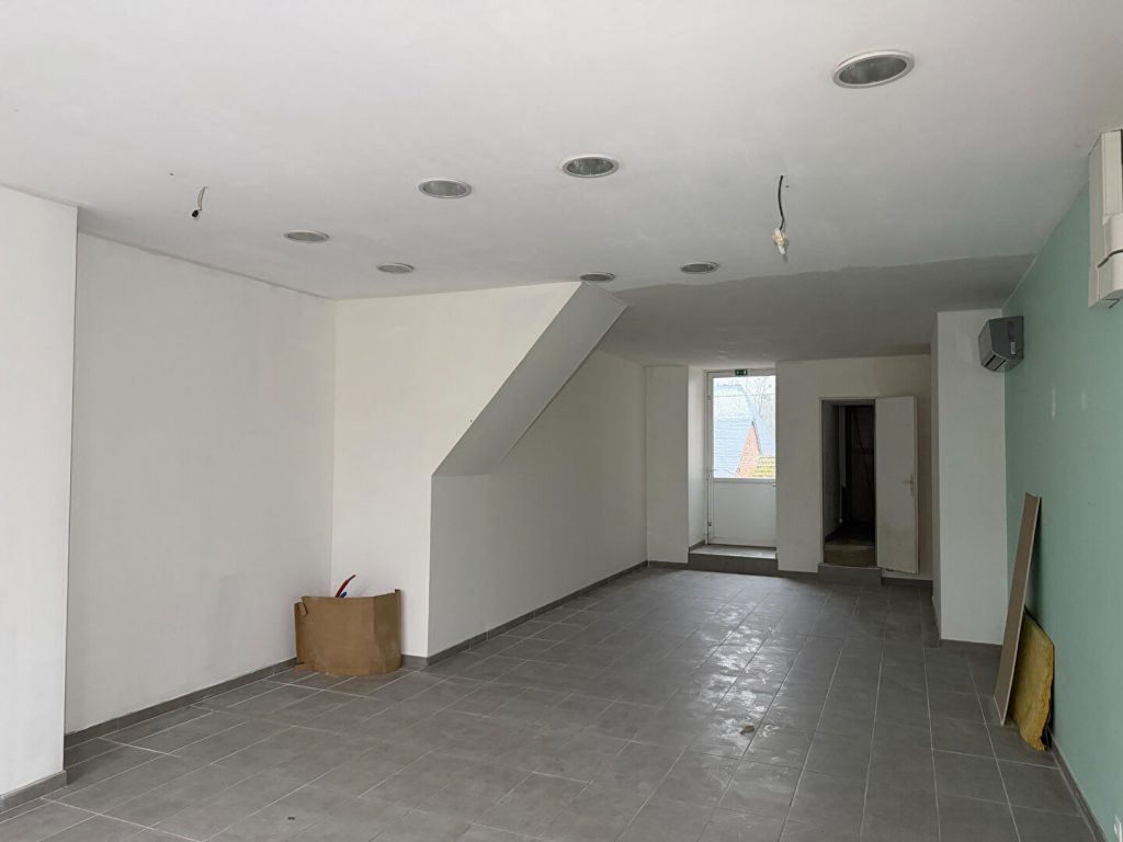 Le local commercial de 60 m2 avec salle de douche et wc indépendant, cave, louable 495 euros.