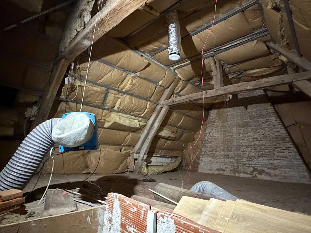 A l’étage, un grenier aménageable de 44m2 permet la création de trois chambres supplémentaires.
