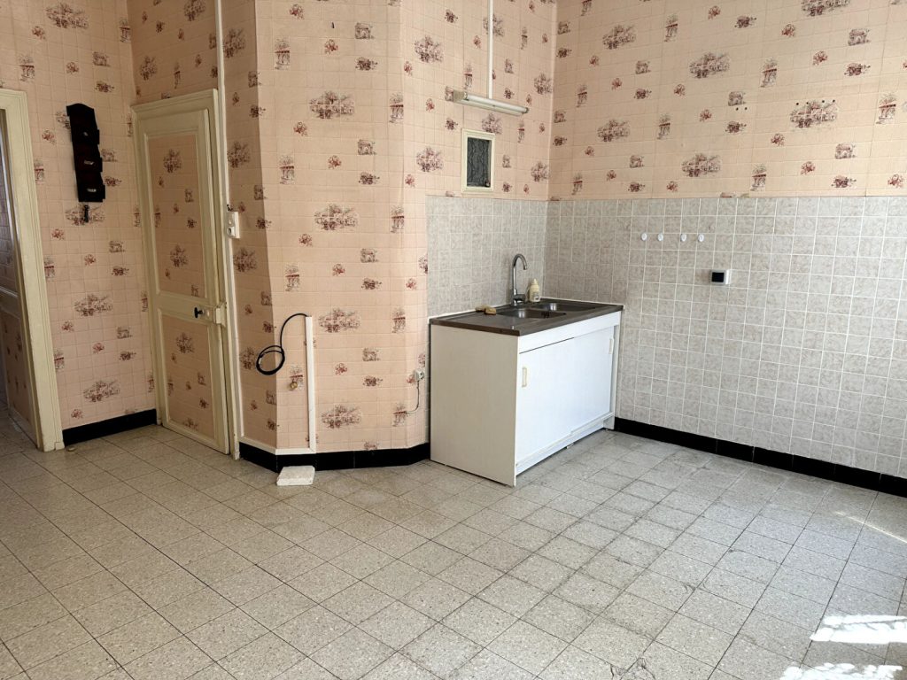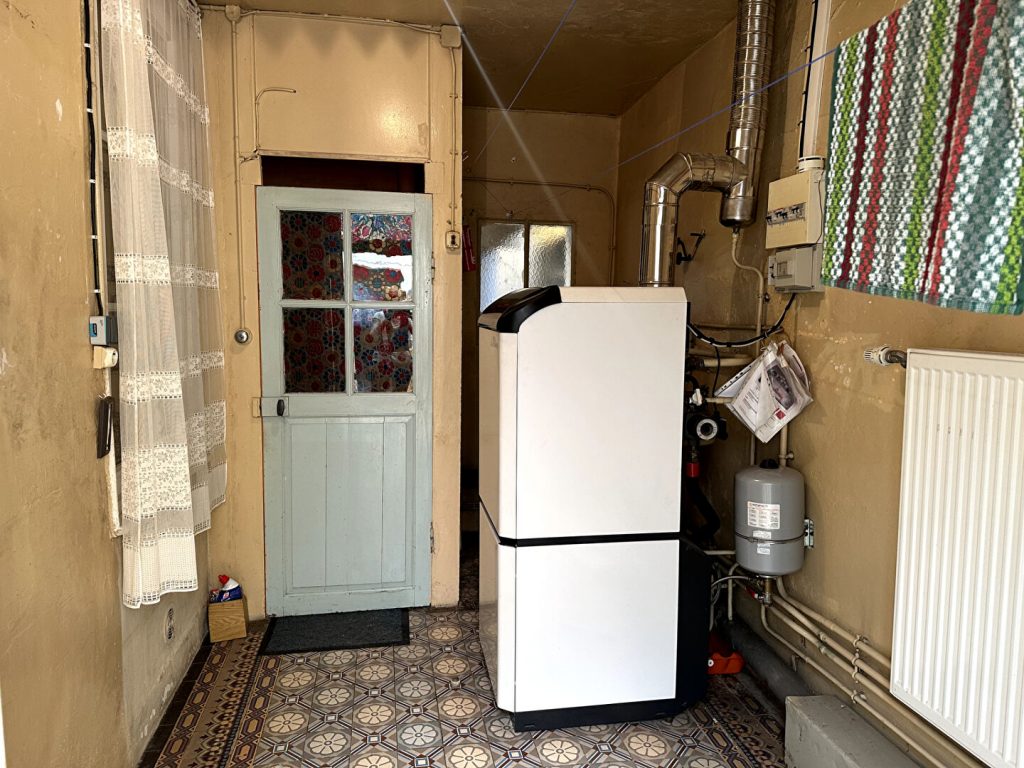 Elle dispose au rdc d’un couloir donnant accès à un salon-séjour, une cuisine, un sas d’entrée donnant accès à la cour, et à la cave, un wc et une chaufferie avec point d’eau.