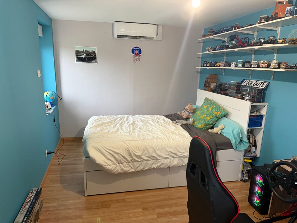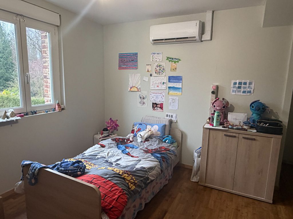 Au RDC, elle comprend une grande cuisine aménagée et équipée, ouverte sur un triple salon-séjour avec poêle à granulés, un bureau, une salle de bains avec douche et espace buanderie, ainsi qu’un WC indépendant.
