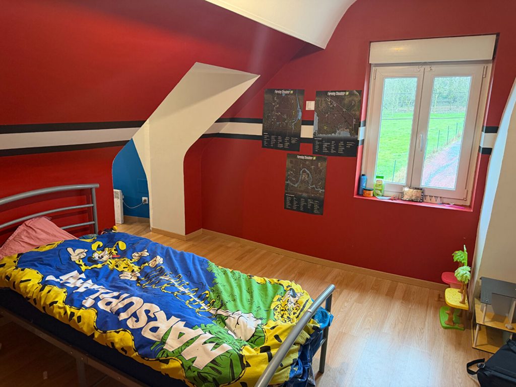 A l’étage, un grand palier dessert quatre chambres et un grenier.