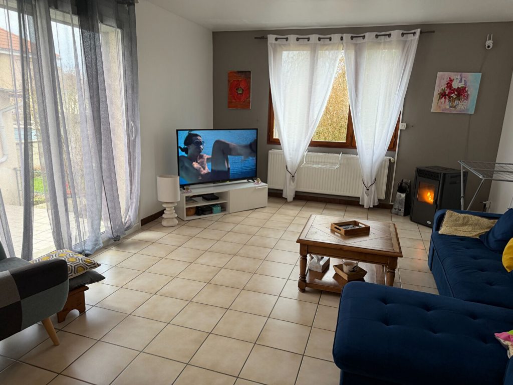 Les + : presque 100m2 de surface habitable – 4 chambres – un salon-salle à manger de plus de 37 m2 – garage – atelier – jardin – terrasse. Elle se compose au RDC, d’une entrée, d’un grand salon avec baie vitrée, une cuisine ouverte sur la salle à manger, une salle de douche, et un wc indépendant.
